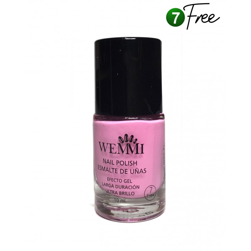 Efecto gel de larga duración, ultra brillo, secado normal (sin lámparas). Esmaltes 7 Free libres de: Tolueno y formaldehído, DBP (ftalatos), Resina de formaldehído, Alcanfor, Parabenos, Xileno. 10 ML